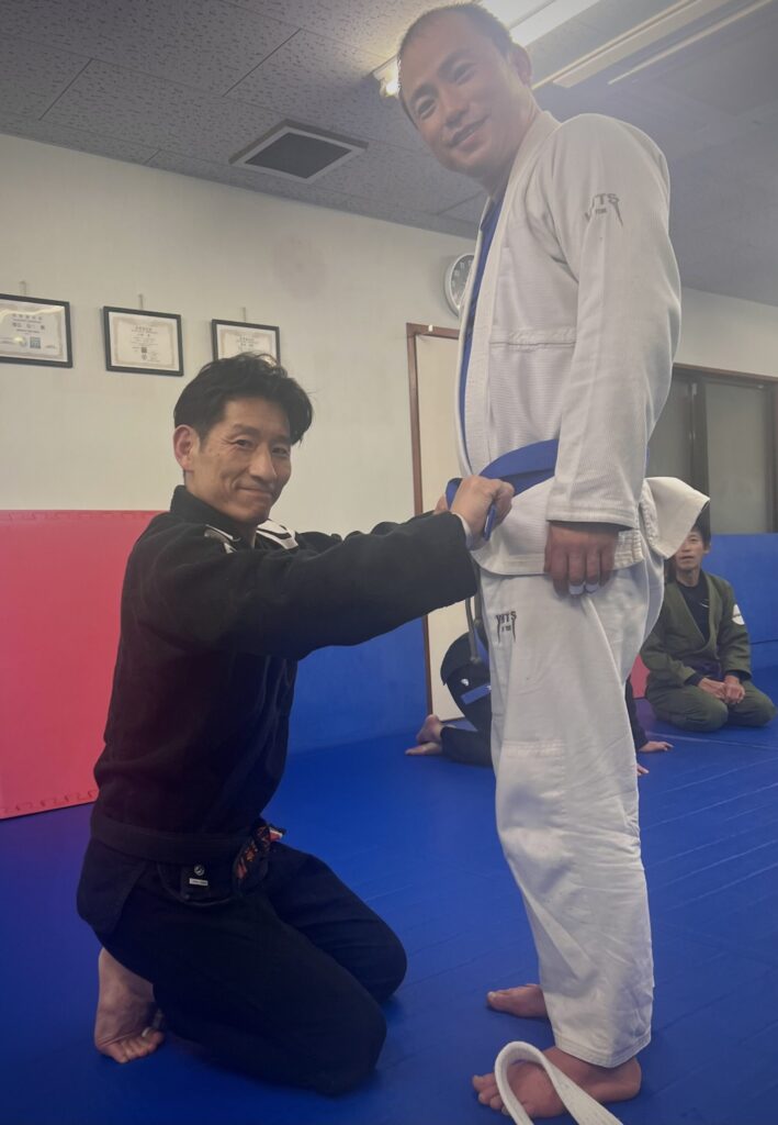 大庭さんが青帯に昇格し、ベルトセレモニーを行いました。おめでとうございます。